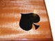 the surface the wood as sanded and a clear finish applied. All the graphics
