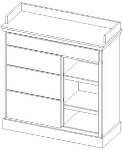 the wardrobe, with three drawers on the left side and a shelf bay on the